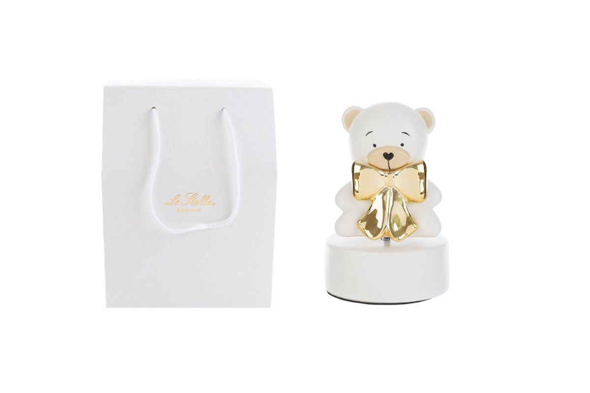 Questo bellissimo carillon bianco con dettaglio oro in porcellana, è l'ideale come bomboniera per eventi speciali. Realizzato con cura e dettaglio, questo carillon è un pezzo unico che aggiungerà eleganza e dolcezza a qualsiasi occasione. Un regalo perfetto per celebrare momenti importanti.